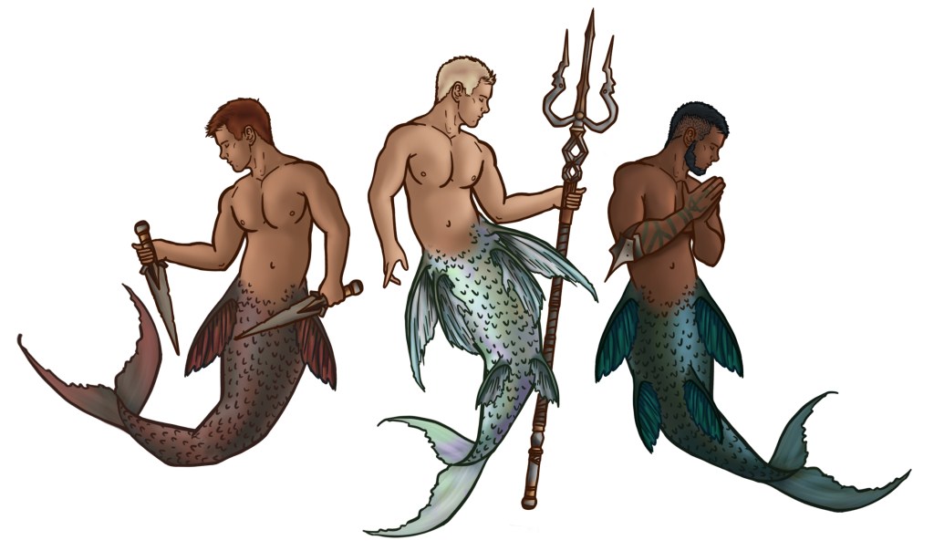 The Mer swim the oceanic depths and, occasionally, breach the surface of the Eternal Tide. They live at the extreme of every emotion, tethered by the net of want. The Mer are insatiable and will find any means to quench their desire by any means. It is indeed difficult to decipher their true need when one gets caught in their alluring song and beauty. Beware treading their waters or you may be ensnared by their captivating ways, their heart-tugging shanties, or their beguiling wiles – all which will drown you ecstasy. Will you be able to set yourself free to breathe the salt heavy air again, or will you be dragged to the depths by one of these enchanting sea-creatures, forgotten beneath the deep blue seas?