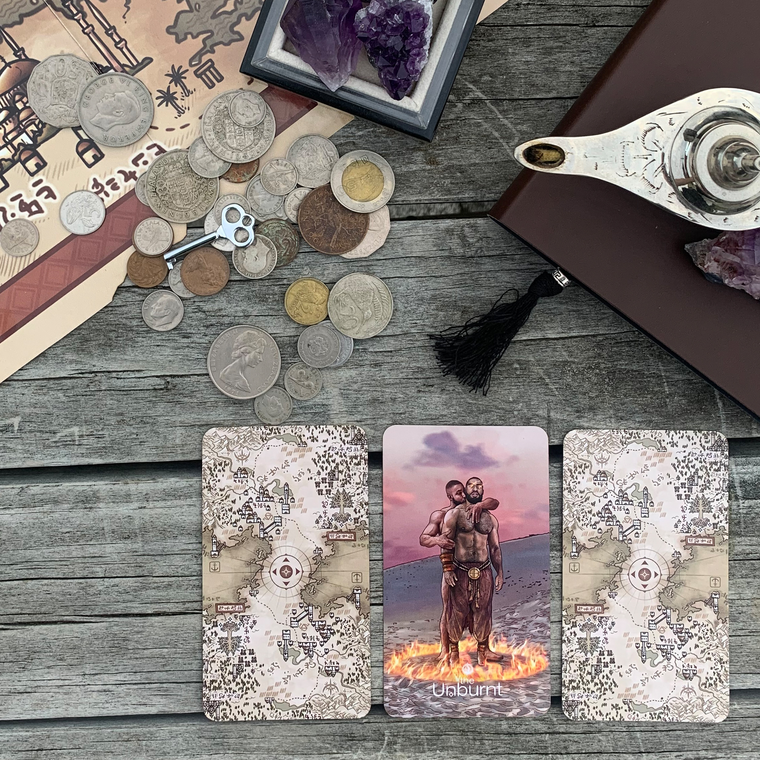Maybe we aspired to be like one of these characters, or saw something of ourselves as the brave underdog, the adored royal, or even the villainous beast. To some degree we fashioned ourselves after these beings, our attempt to bring a bit of magic to a mundane world. The Salt and Ash Oracle is a venture into fantasy realms where we can connect you, “the Explorer”, to a variety of forces and archetypes present in those stories of old. Each encounter has a story to tell, a lesson to teach, something new to reveal, or remind of things long forgotten.